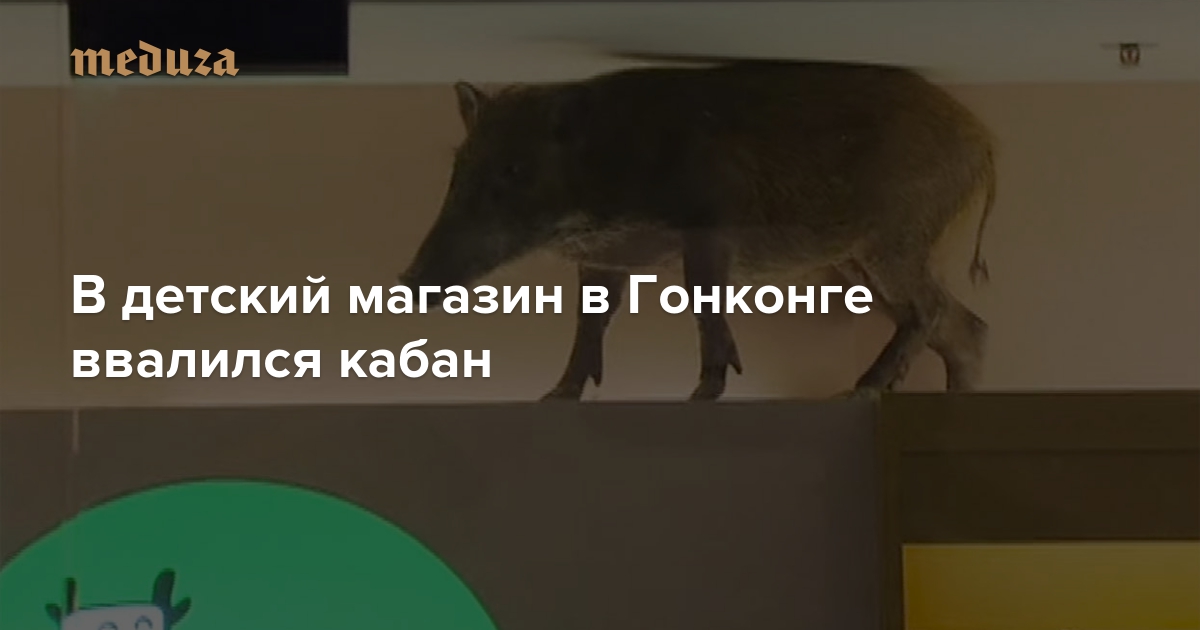 В магазин детской одежды в одном из торговых центров Гонконга ввалился дикий кабан. Животное весом около 25 килограммов продавило потолок и попало в помещении магазина.