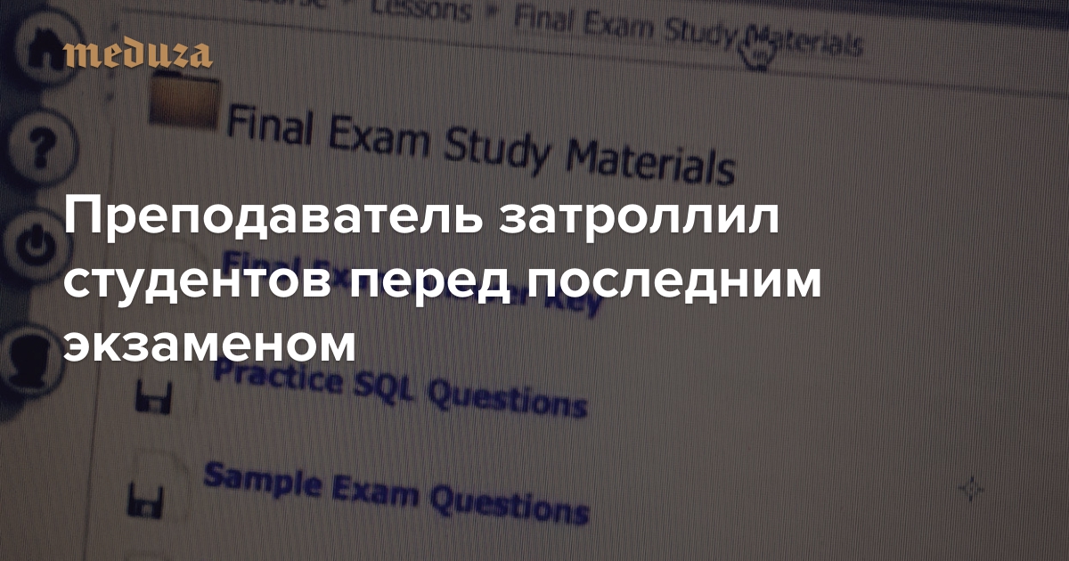 Пользователь Reddit с псевдонимом Toasty_Jones показал, как преподаватель его приятеля поиздевался над своими студентами. Профессор опубликовал на сайте материалы для подготовки к финальному экзамену, в том числе и вопросы к нему.