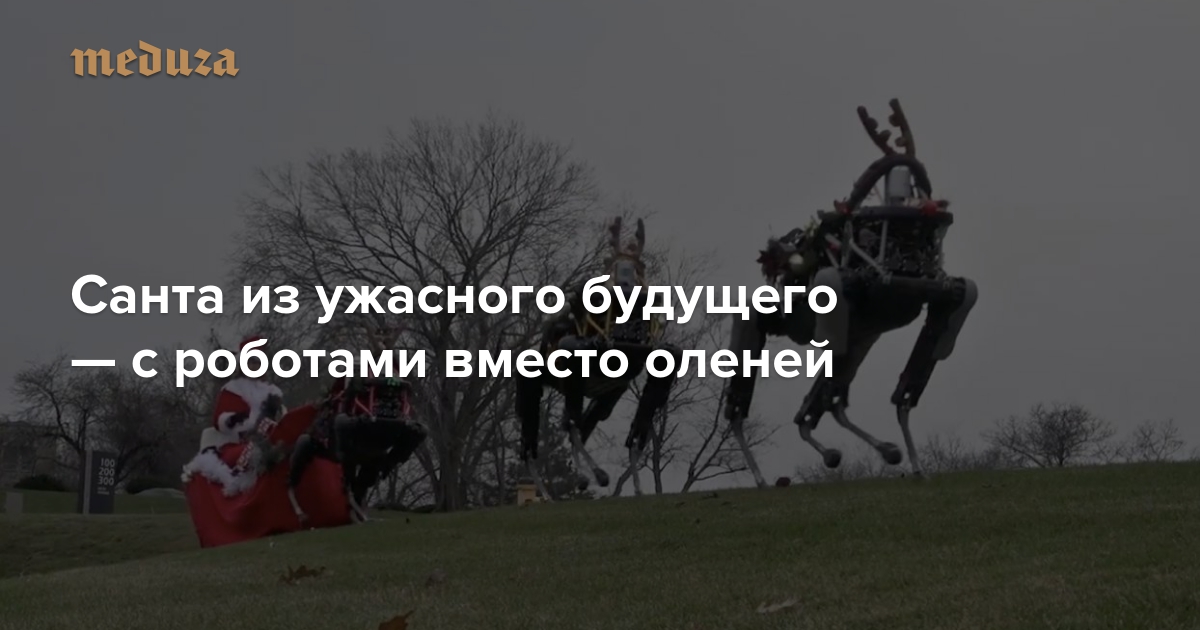 Компания Boston Dynamics, разработчик ходячих роботов, сняла рождественское поздравление. На видео упряжку с Санта-Клаусом тянут три четвероногих робота с оленьими рогами. И выглядит это крайне пугающе.
