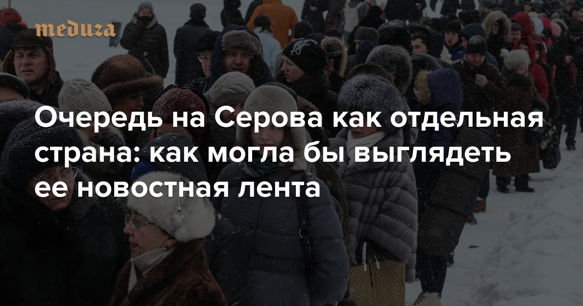 В комментариях к этому посту появились десятки вариантов заголовков новостей, которые могли бы появиться, останься с нами очередь на Серова надолго. «Медуза» выбрала лучшие варианты, чтобы вам не пришлось скроллить очень длинную ленту комментариев.