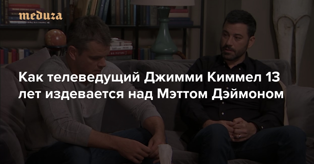 Jimmy Kimmel Live — одно из самых известных ток-шоу, которое подарило нам, в частности, замечательную рубрику «Звезды читают гадкие твиты о себе». И уже больше 10 лет ведущий Джимми Киммел издевается в своей передаче над Мэттом Дэймоном. Нельзя сказать, что голливудский актер не обижается — он еще как зол — но несмотря на это, Дэймон продолжает попытки попасть на шоу. И недавно ему даже удалось это проделать, но не вполне честным образом. «Медуза» вспоминает лучшие моменты долгих и очень смешных взаимоотношений Киммела и Дэймона.