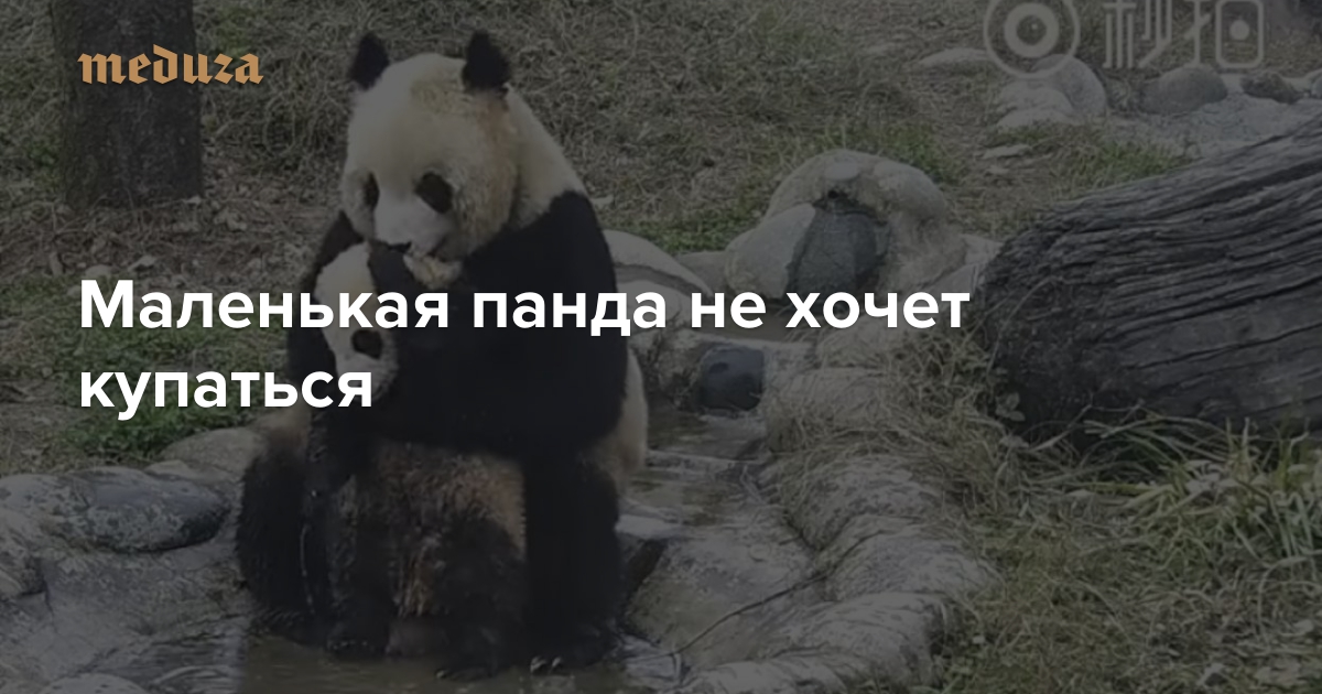 Взрослая панда пытается искупать малыша, но тот не очень-то и рад. Маленькая панда всеми силами противится водным процедурам. К сожалению, из видео неясно, кто победил.
