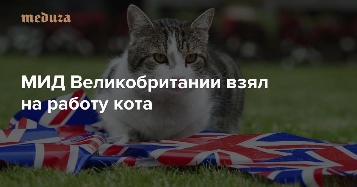 На службу в министерство иностранных дел Великобритании наняли кота. Новый сотрудник будет работать бок о бок с ведущими дипломатами страны. В его полномочия входит ловля мышей. Представители МИДа пообещали, что на содержание кота не потратят деньги налогоплательщиков.