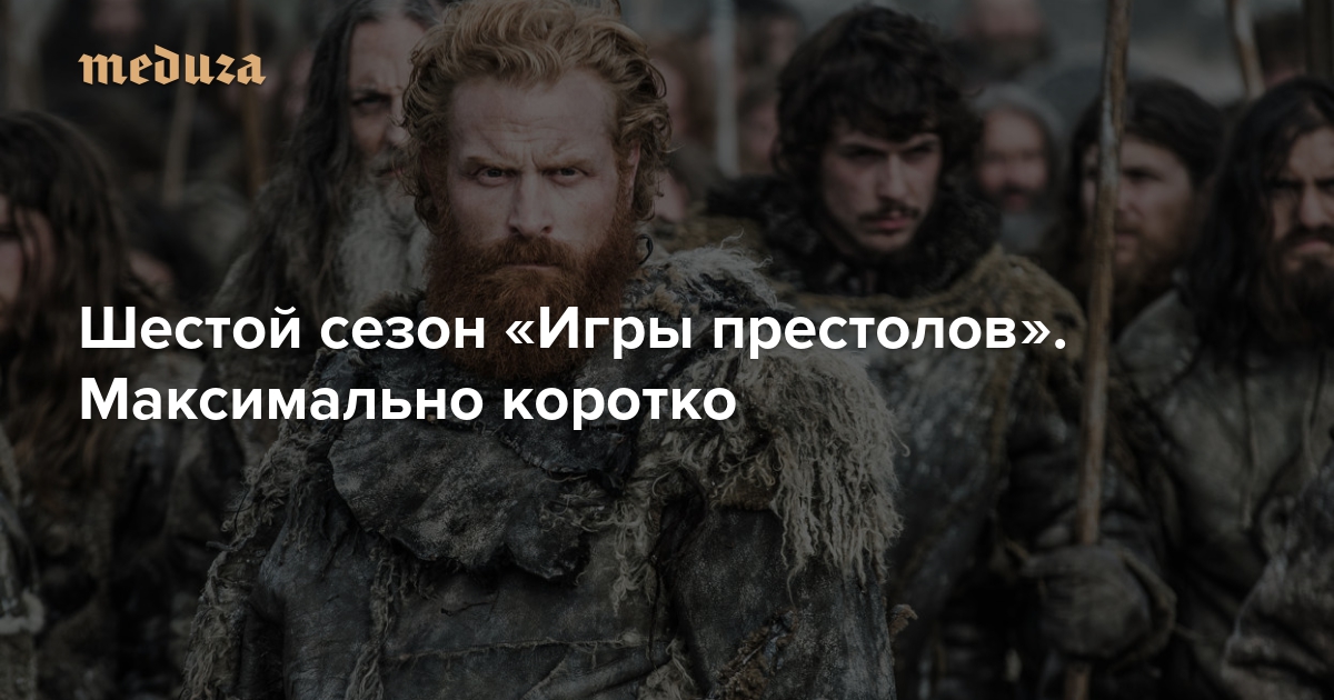Закончился шестой сезон «Игры престолов», главного сериала современности. Продолжение — только через год. «Медуза» максимально коротко пересказывает последний сезон сериала (для тех, кто не справляется с обилием смертей и сюжетных линий).