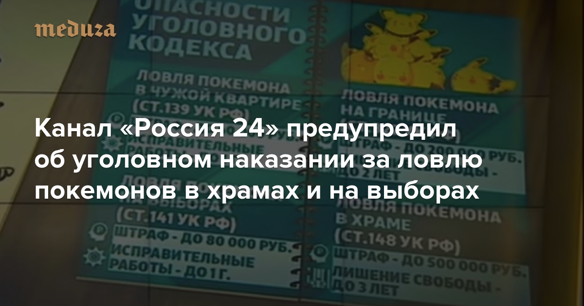 Канал «Россия 24» предупредил об уголовном наказании за ловлю покемонов в храмах и на выборах