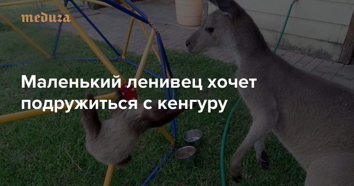 Маленький ленивец хочет подружиться с кенгуру