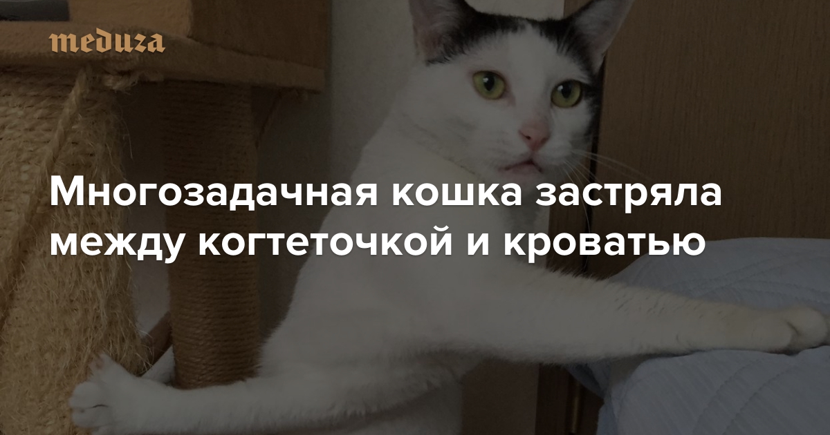 Стоит однажды попасть в глупую ситуацию, и ты звезда. Японская кошка по имени Милк-тян попыталась одновременно поточить когти о когтеточку и запрыгнуть на кровать, но что-то пошло не так: она застряла.