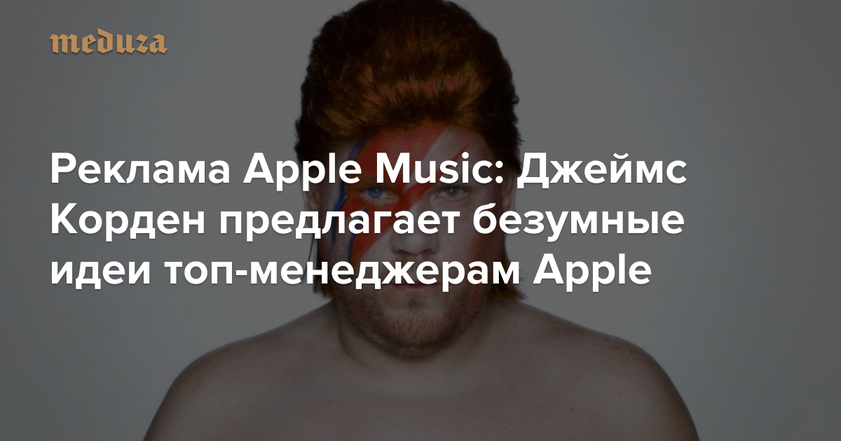 Apple выпустила рекламный ролик музыкального сервиса Apple Music, который выглядит как процесс придумывания рекламного ролика. На видео телеведущий Джеймс Корден предлагает разные идеи с собой в главной роли, а топ-менеджеры Apple их отвергают.