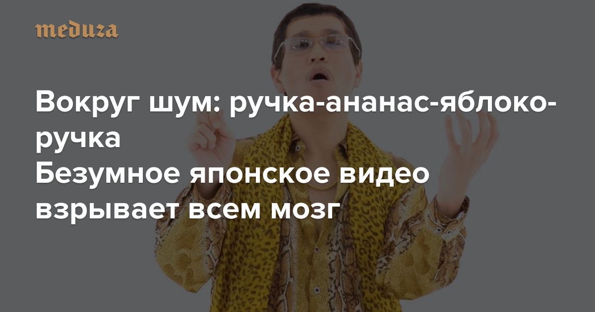 В конце августа на YouTube появилось видео, на котором усатый японец в ярком наряде танцует под незамысловатую мелодию и поет очень прилипчивую песенку «Pen-Pineapple-Apple-Pen» (PPAP). Через месяц это видео заметили за пределами Японии, и теперь уже весь мир пытается забыть PPAP. А заодно снимает пародии, записывает каверы и публикует рисунки.