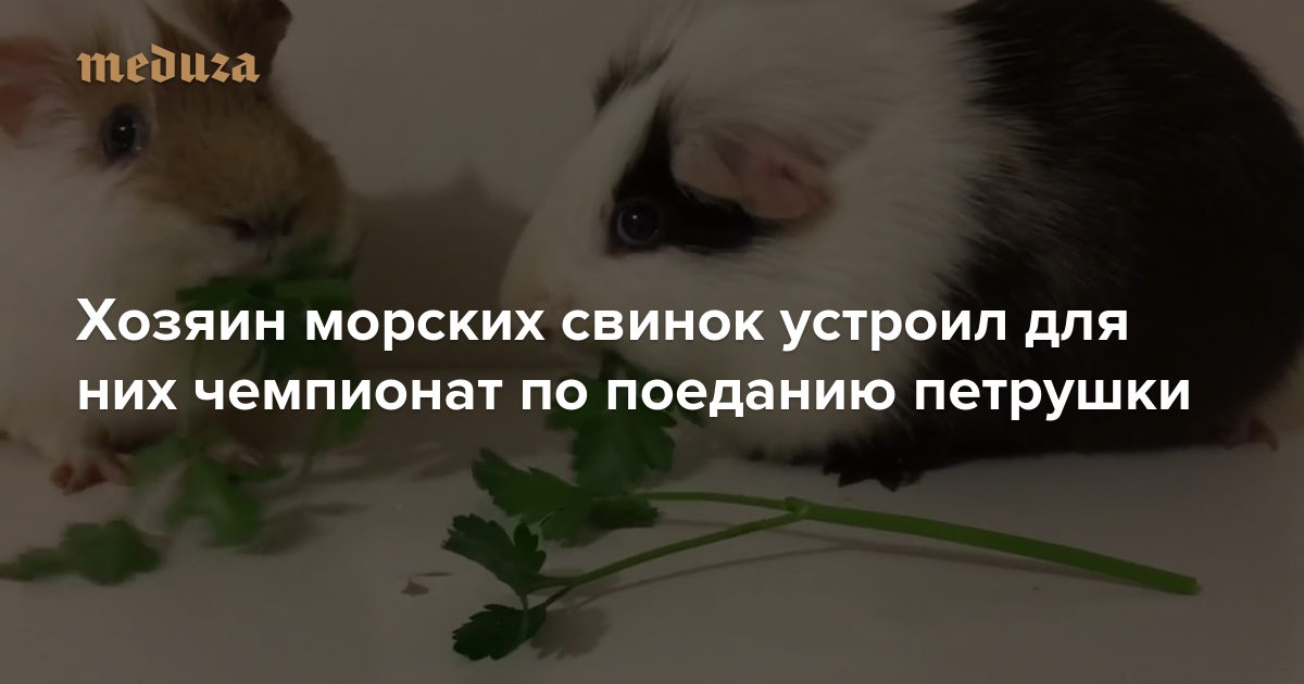 Хозяин двух морских свинок — Пабло и Кастарда — устроил для своих питомцев чемпионат по поеданию петрушки. Он комментировал происходящее не хуже профессиональных ведущих.