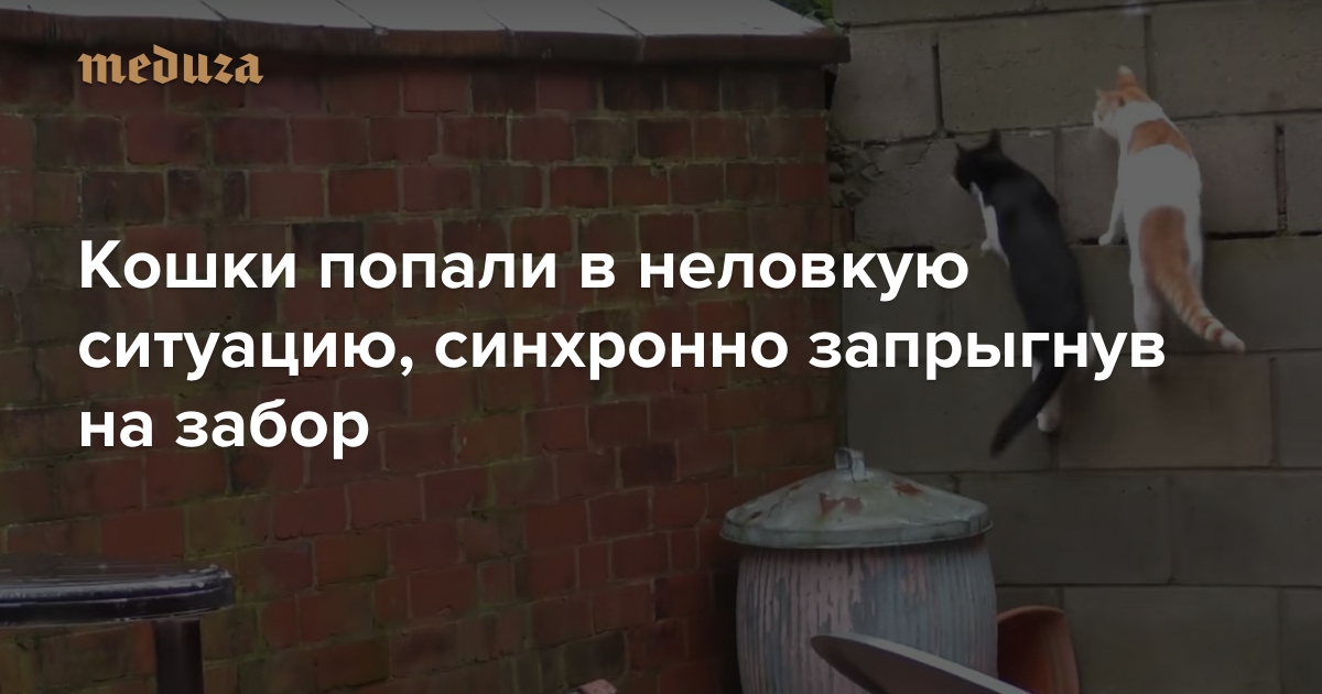 Кошки попали в неловкую ситуацию, синхронно запрыгнув на забор