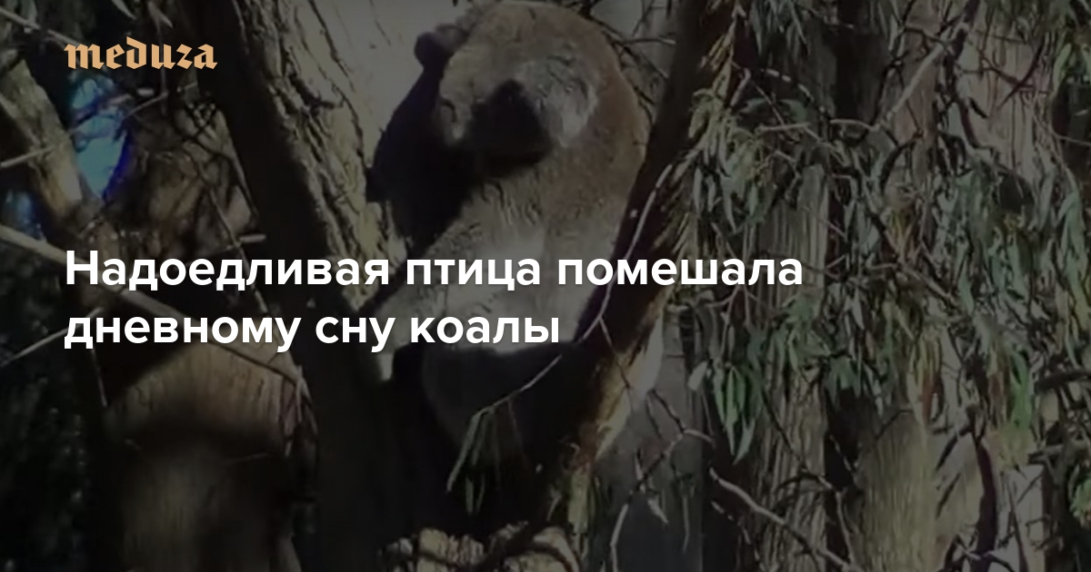 В австралийском штате Новый Южный Уэльс надоедливая ворона-флейтист мешала коале дремать на дереве. Птица издавала резкие звуки и клевала коалу, но та только лениво отмахивалась и прятала мордочку.