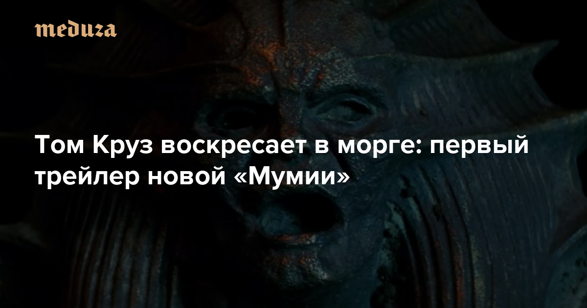 Студия Universal выпустила первый трейлер фильма «Мумия» — перезапуска одноименной серии приключенческих боевиков. В ролике самолет, перевозящий саркофаг с древней царицей, терпит крушение, и герой Тома Круза разбивается. Но позже он просыпается в морге невредимым.