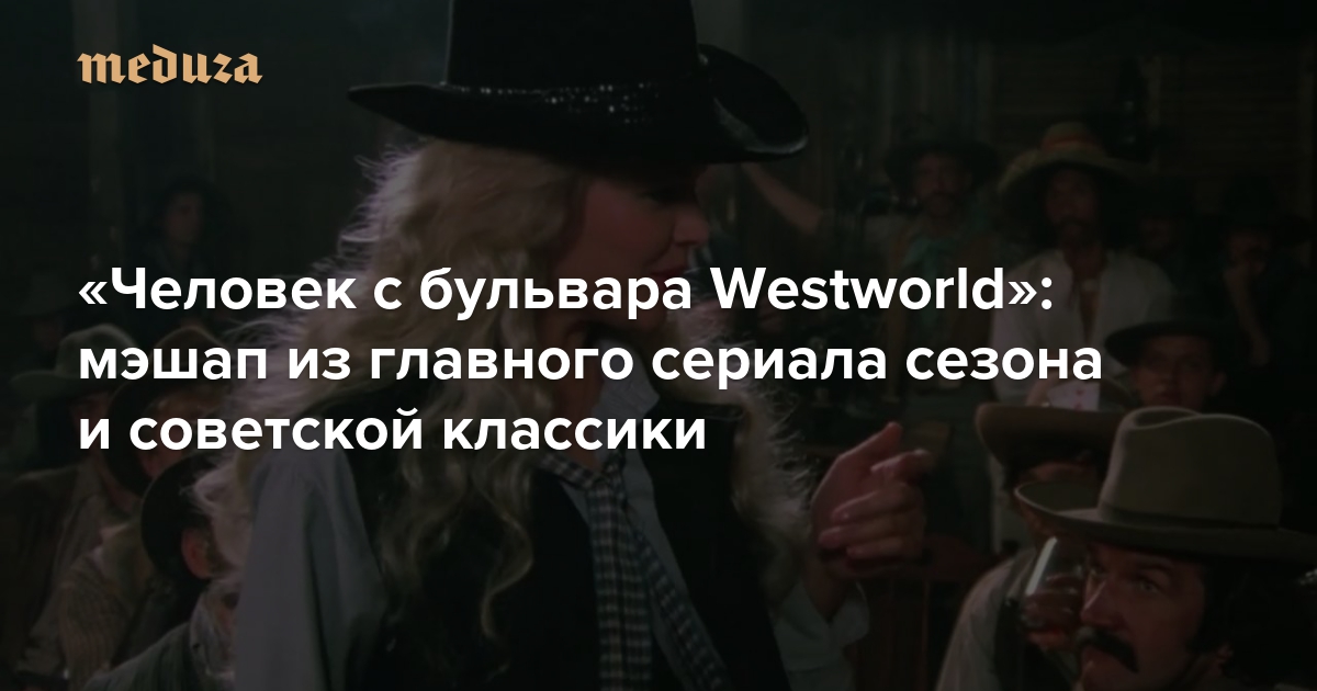 «Медуза» уже рассказывала, что главные герои сериала «Мир Дикого запада» удивительно похожи на героев фильма «Человек с бульвара Капуцинов». Теперь промо-продюсер канала 2×2 с псевдонимом super_vhs сделал мэшап из этих двух произведений: он наложил звуковую дорожку из трейлера «Мира Дикого запада» и на кадры из советского фильма.