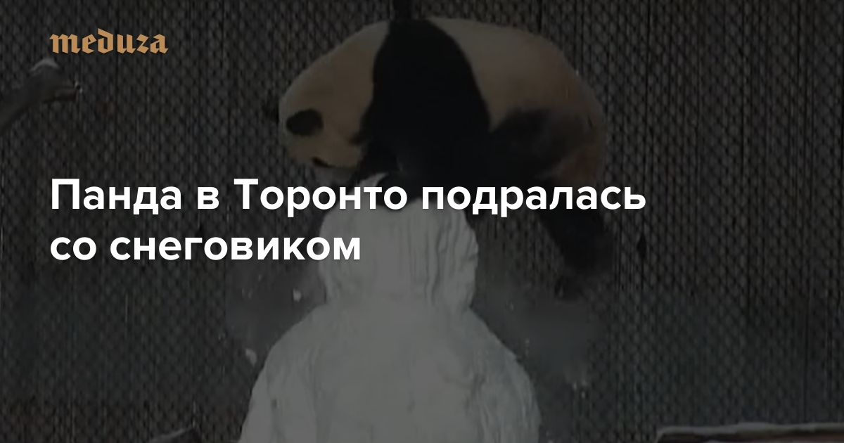 На прошлой неделе в Канаде выпал снег, и сотрудники зоопарка в Торонто решили слепить снеговика для большой панды по имени Да Мао. Но панде снеговик не понравился — Да Мао попыталась сломать его. На видео животное отламывает снеговику голову, запрыгивает на него, бьет и пинает. Но все бесполезно.