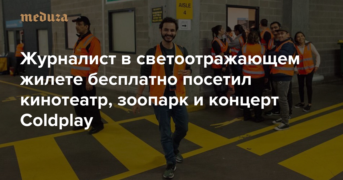 Журналист в светоотражающем жилете бесплатно посетил кинотеатр, зоопарк и концерт Coldplay