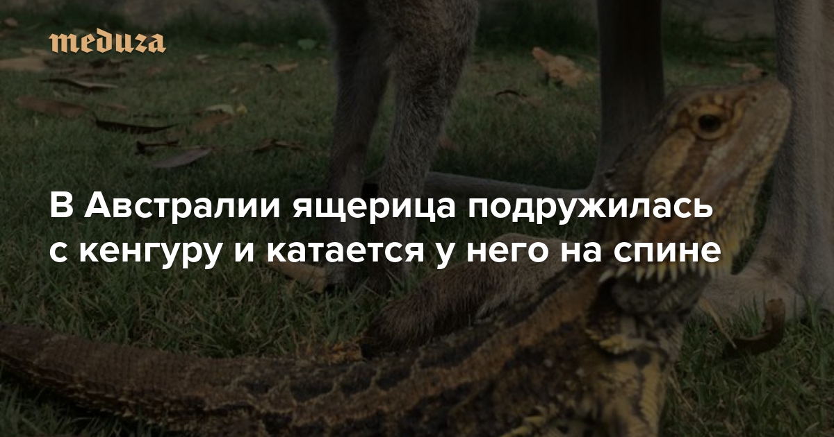 В Австралии ящерица подружилась с кенгуру и катается у него на спине