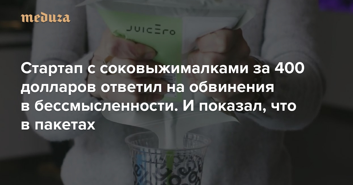 Стартап с соковыжималками за 400 долларов ответил на обвинения в бессмысленности. И показал, что в пакетах