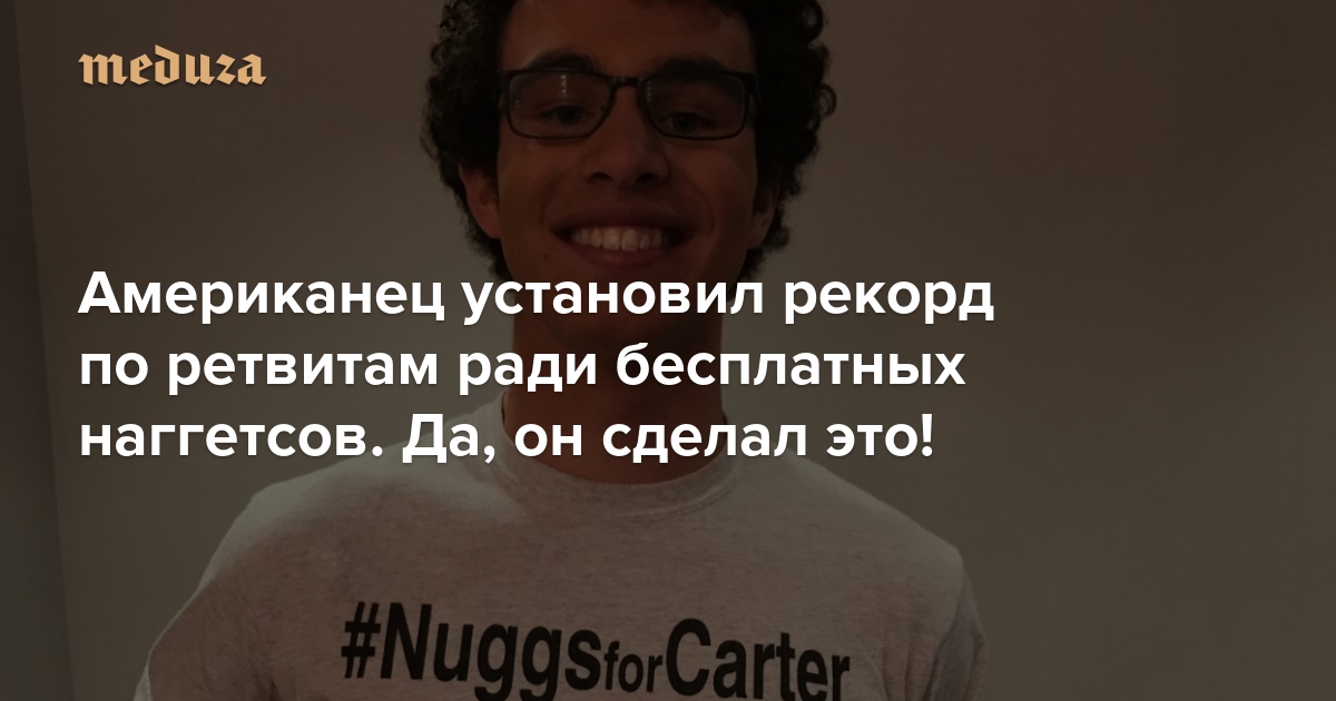 Картер Уилкерсон из штата Невада установил новый рекорд по ретвитам и теперь год будет есть бесплатные наггетсы в сети Wendyʼs.