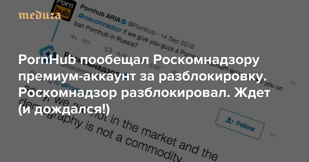 PornHub пообещал Роскомнадзору премиум-аккаунт за разблокировку. Роскомнадзор разблокировал. Ждет (и дождался!)