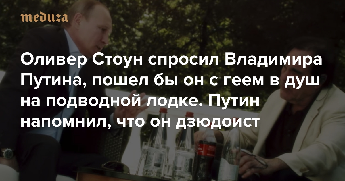 Оливер Стоун спросил Владимира Путина, пошел бы он с геем в душ на подводной лодке. Путин напомнил, что он дзюдоист