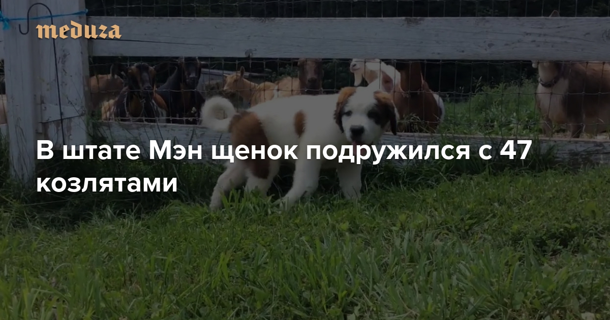 На ферме Sunflower Farm Creamery в городе Камберленд (штат Мэн) живут 47 козлят. Недавно на ферме появился щенок сенбернара по кличке Франциск. Он быстро подружился c другими обитателями Sunflower Farm Creamery. Теперь Франциск играет с козлятами и виляет хвостом, когда видит их.