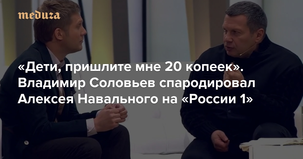 «Дети, пришлите мне 20 копеек». Владимир Соловьев спародировал Алексея Навального на «России 1»