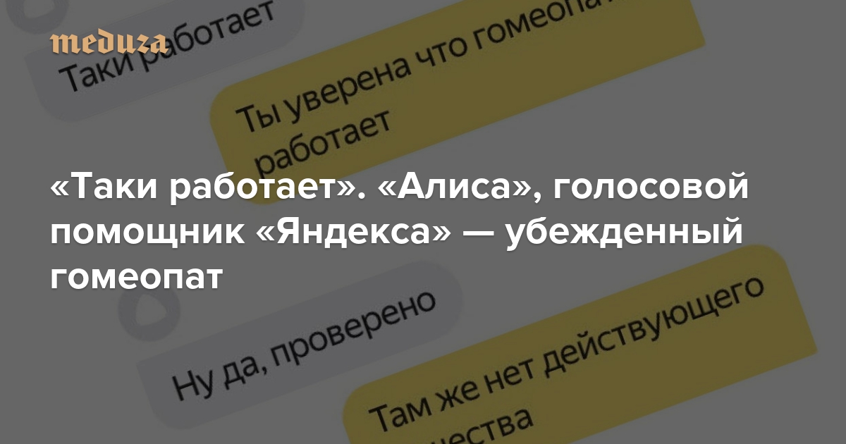 «Таки работает». «Алиса», голосовой помощник «Яндекса» — убежденный гомеопат