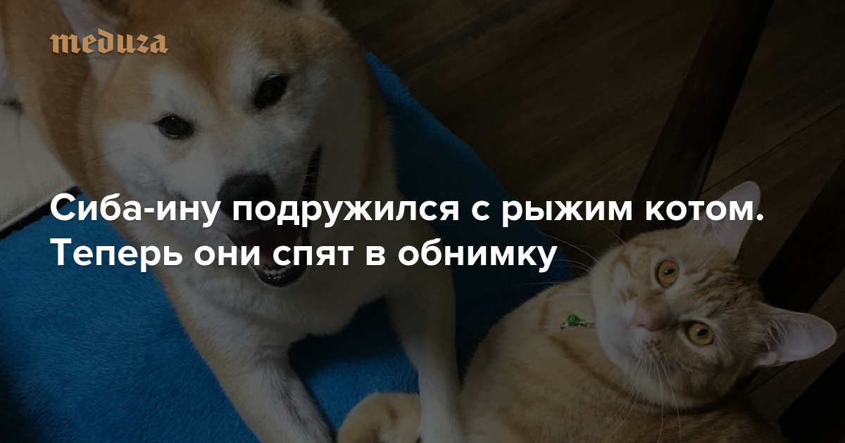 Пятилетний сиба-ину по имени Гаку живет в Японии вместе с двумя кошками — Ринрин (ей тоже пять лет) и годовалым Тораджиро. С рыжим Тораджиро Гаку особенно подружился: пес и кот часто лежат в обнимку и вылизывают друг другу уши.