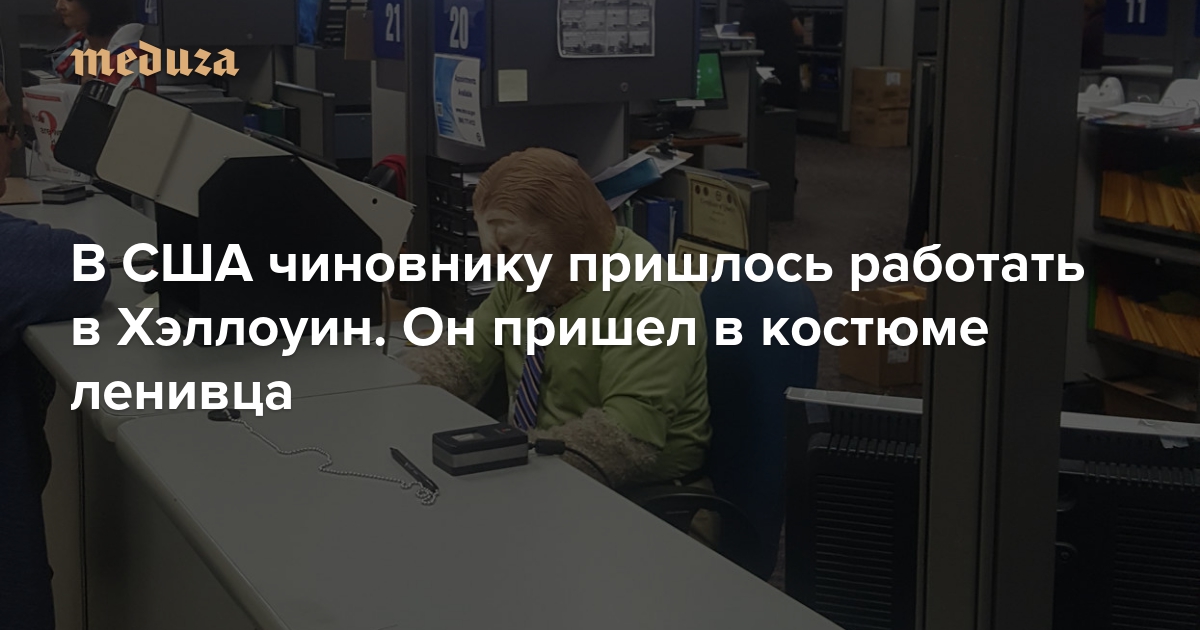 В США чиновнику пришлось работать в Хэллоуин. Он пришел в костюме ленивца