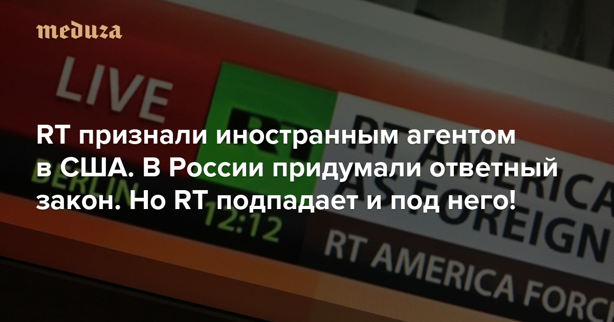 Новый российский закон о СМИ — иностранных агентах написан так, что этот статус могут присвоить даже каналу RT (Russia Today). В результате канал может стать иностранным агентом и в США (из-за чего и принимают российский закон), и, теоретически, в России. Внимание на коллизию обратила журналист «Ведомостей» Ксения Болецкая.
