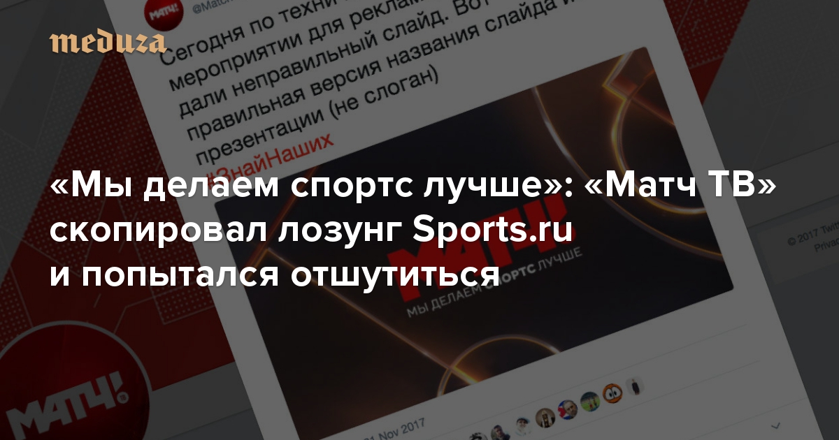 Правда, оказалось, что шуточный лозунг «Матч ТВ» тоже подсмотрел на Sports.ru.