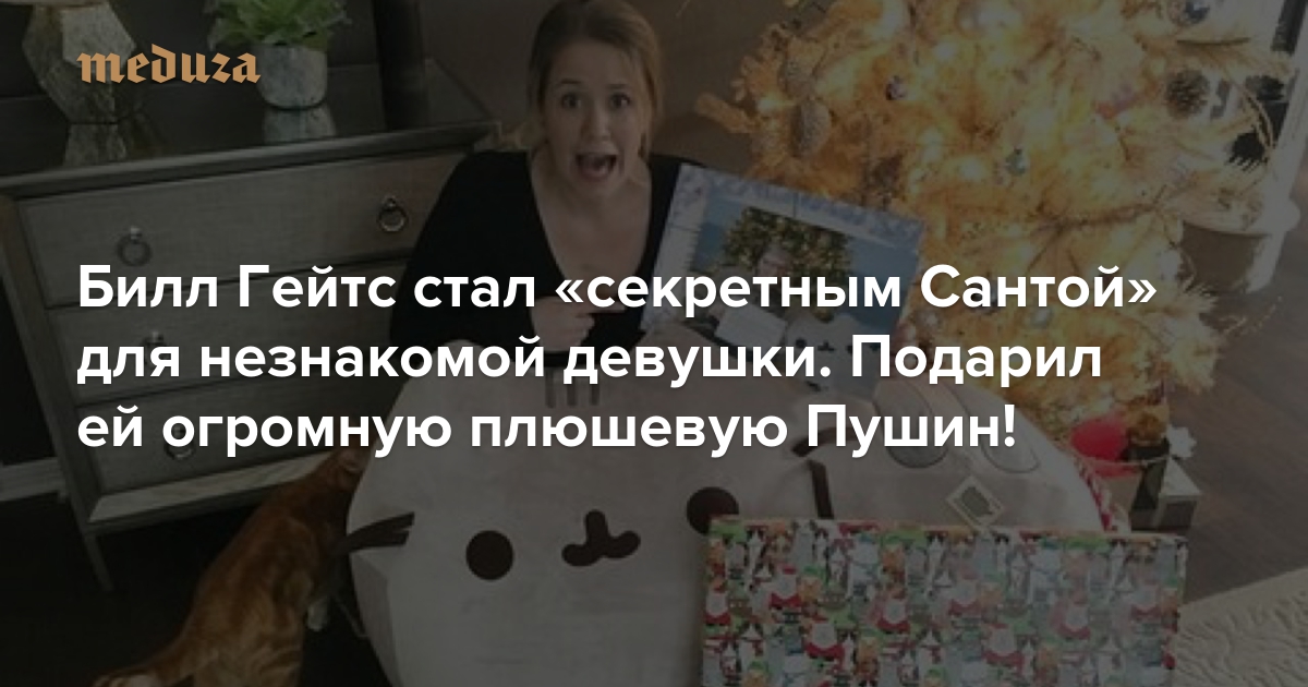 Билл Гейтс стал «секретным Сантой» для незнакомой девушки. Подарил ей огромную плюшевую Пушин!