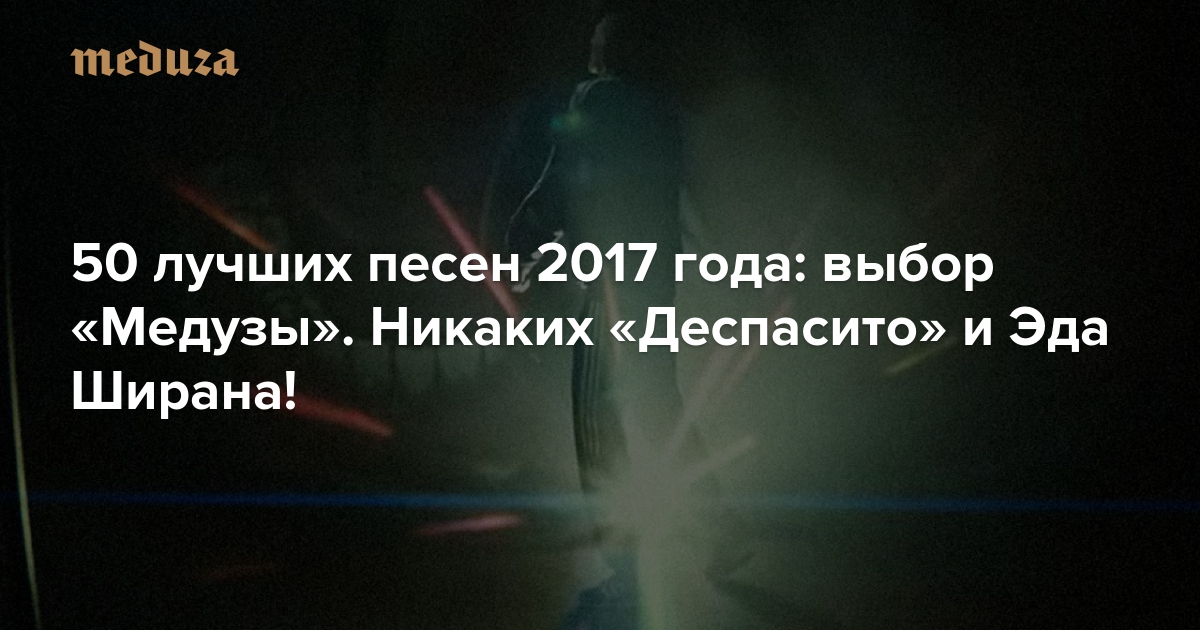 Начало нового года — повод подвести итоги старого. Например, вспомнить, что в 2017-м случилось с музыкой. «Медуза» представляет плейлист из 50 лучших песен, вышедших за последние 12 месяцев. Мы постарались включить сюда песни, без которых прошлый год представить невозможно, но специально исключили несколько шлягеров — слушать их больше нет сил. Порядок песен в плейлисте не подразумевает никакой иерархии: здесь нет ни первого места, ни пятидесятого.