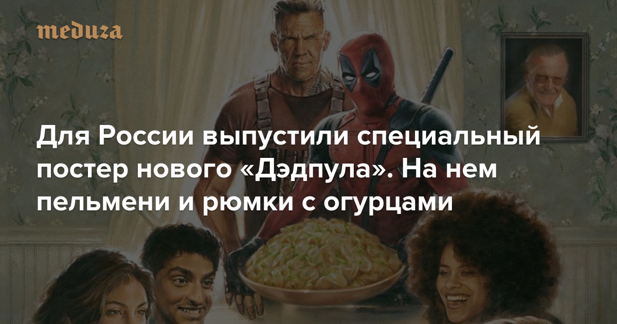 Пользователи соцсетей обнаружили, что студия 20th Century Fox выпустила российскую версию постера «Дэдпула 2» — с пельменями и рюмками, на которых лежат огурцы.