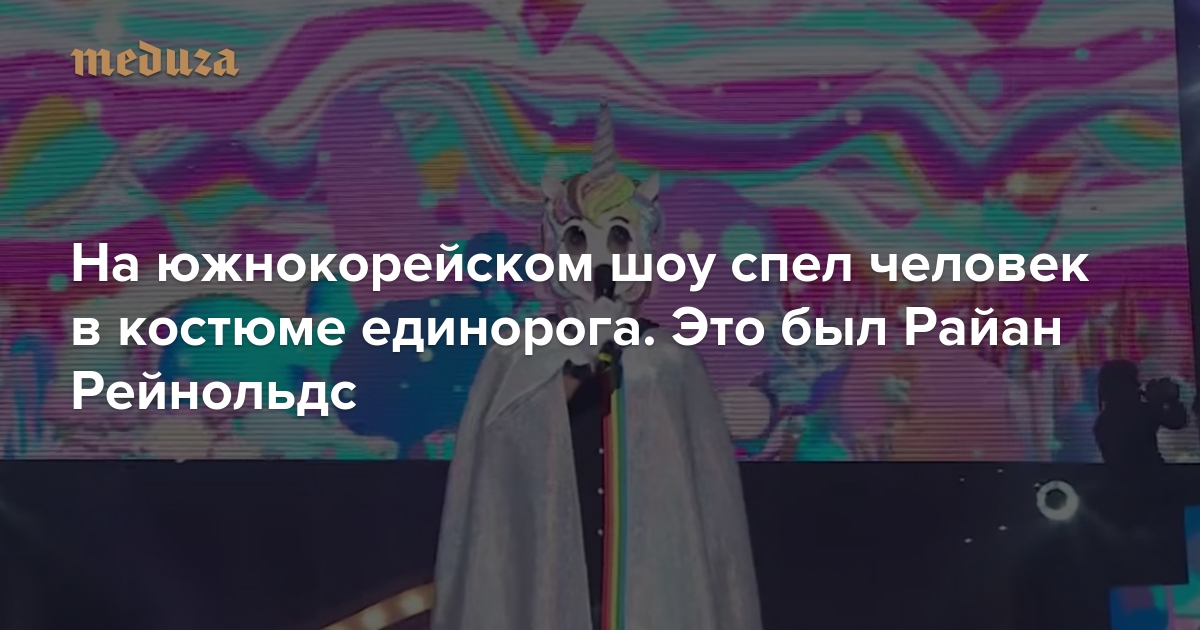 На южнокорейском шоу спел человек в костюме единорога. Это был Райан Рейнольдс
