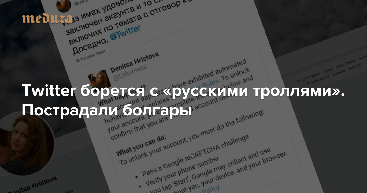 Пользователи Twitter из Болгарии пожаловались на блокировки их аккаунтов без видимой причины. Как предполагает издание The Verge, это связано с попытками платформы разобраться с «русскими троллями».