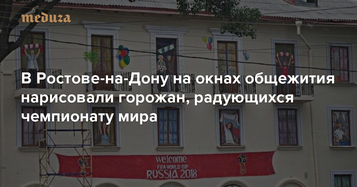 В Ростове-на-Дону на окнах общежития нарисовали горожан, радующихся чемпионату мира