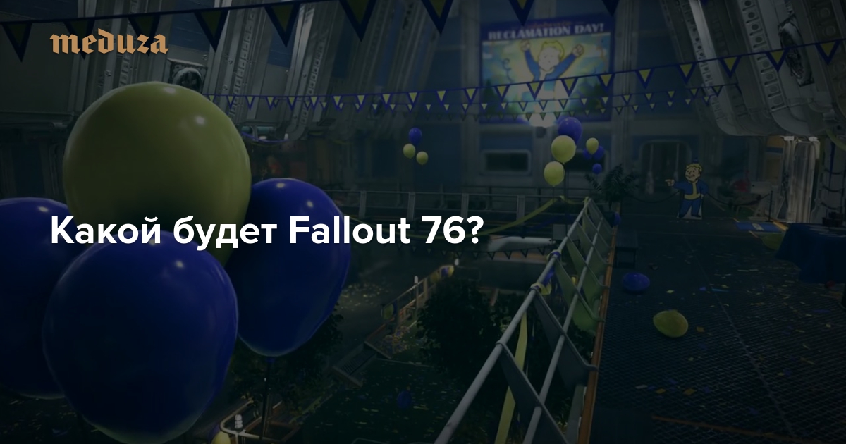 Издательство Bethesda 30 мая анонсировало новую игру Fallout 76 — продолжение серии про мир, переживший ядерную войну в XXI веке. Пока Bethesda показала только небольшой тизер, пообещав рассказать подробности на конференции E3 в июне. Но СМИ, пишущие об игровой индустрии, уже узнали некоторые детали о Fallout 76.