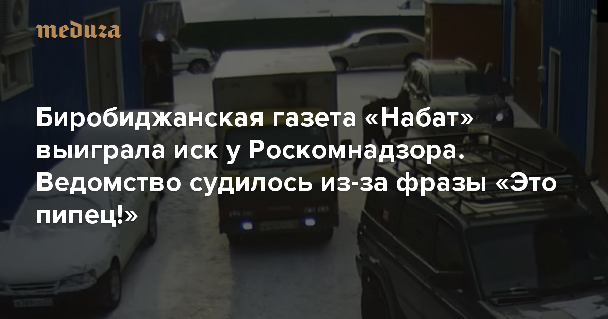 Суд Еврейской автономной области отклонил административный иск территориального отдела Роскомнадзора к интернет-газете «Набат», обвиненной в использовании в своем материале фразы «Это пипец». Производство по иску прекратили «в связи с отсутствием события административного правонарушения».