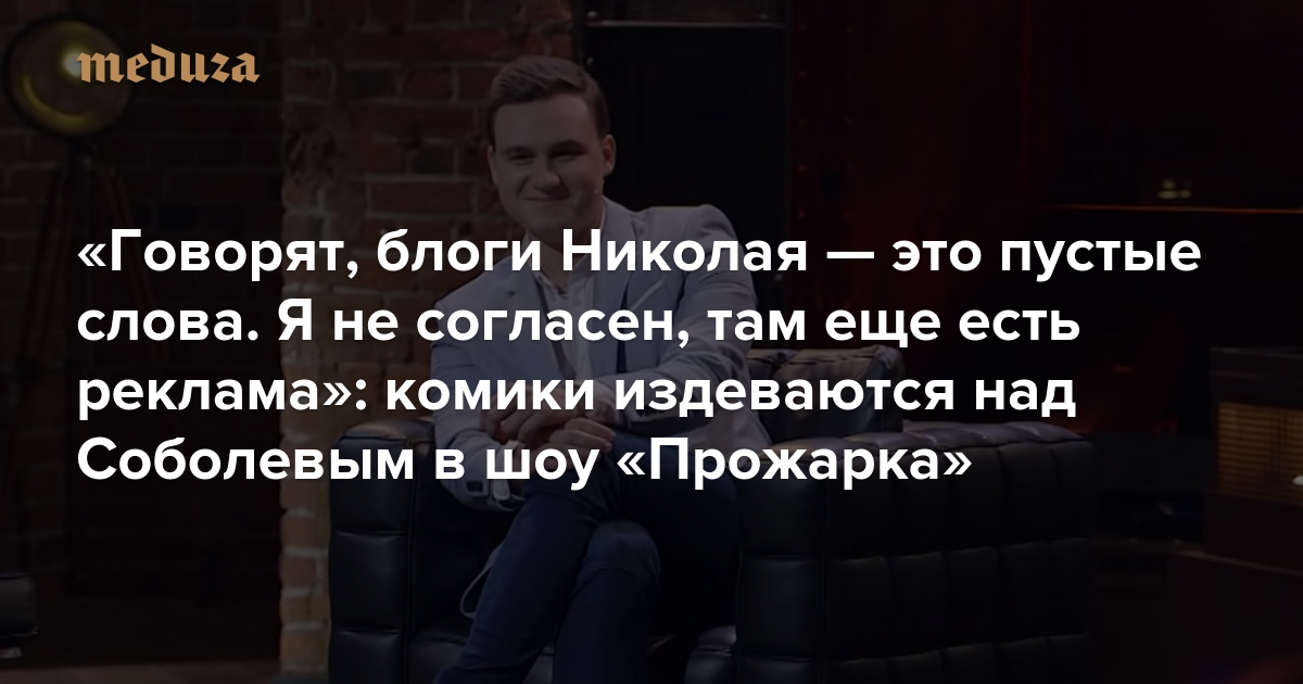 «Говорят, блоги Николая — это пустые слова. Я не согласен, там еще есть реклама»: комики издеваются над Соболевым в шоу «Прожарка»