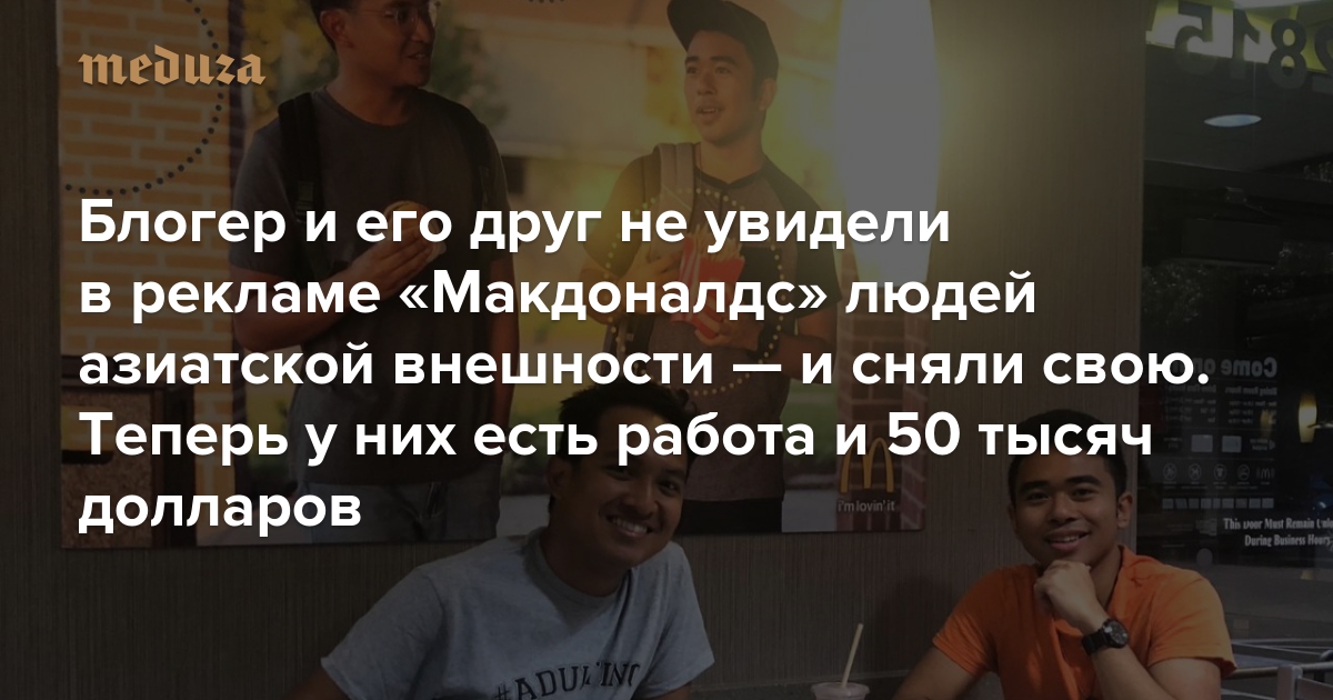 Блогер и его друг не увидели в рекламе «Макдоналдс» людей азиатской внешности — и сняли свою. Теперь у них есть работа и 50 тысяч долларов