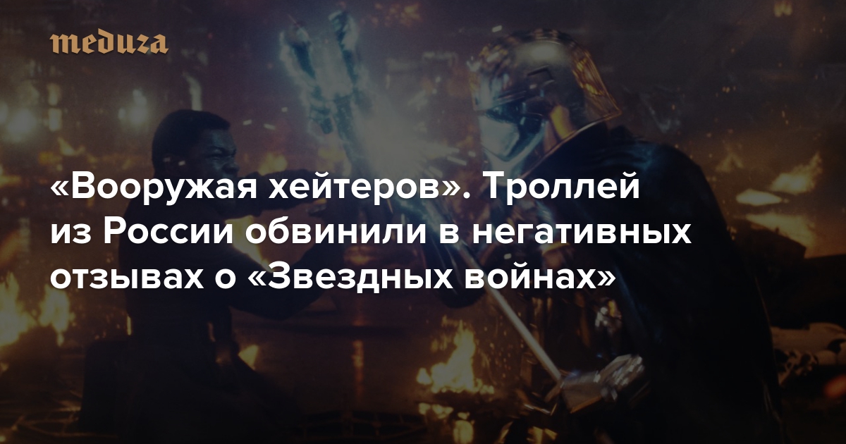 Интернет-тролли из России оставляли негативные твиты о фильме «Звездные войны: Последние джедаи», чтобы посеять раздор в американском обществе. К такому выводу пришел исследователь Мортен Бэй, который работает в Школе коммуникаций и журналистики при Университете Южной Калифорнии (там учился Джордж Лукас). Исследование «Вооружая хейтеров: „Последние джедаи“ и стратегическая политизация поп-культуры через манипуляции в соцсетях» опубликовано на сайте ResearchGate, бесплатной соцсети, объединяющей ученых всех научных дисциплин.