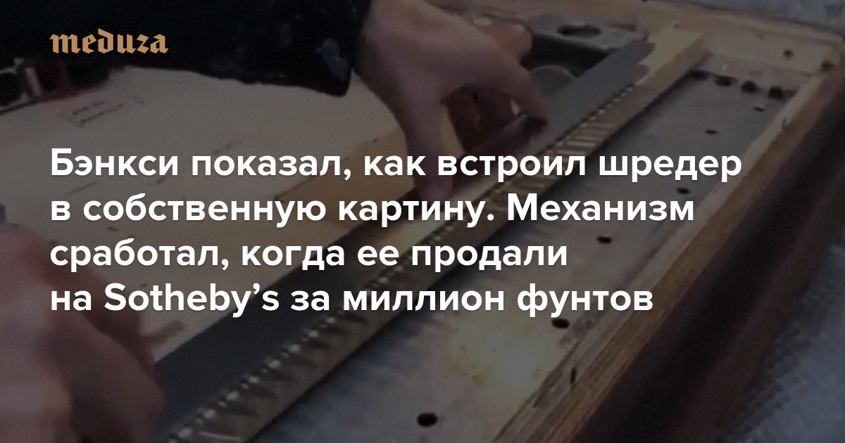Бэнкси показал, как встроил шредер в собственную картину. Механизм сработал, когда ее продали на Sothebyʼs за миллион фунтов