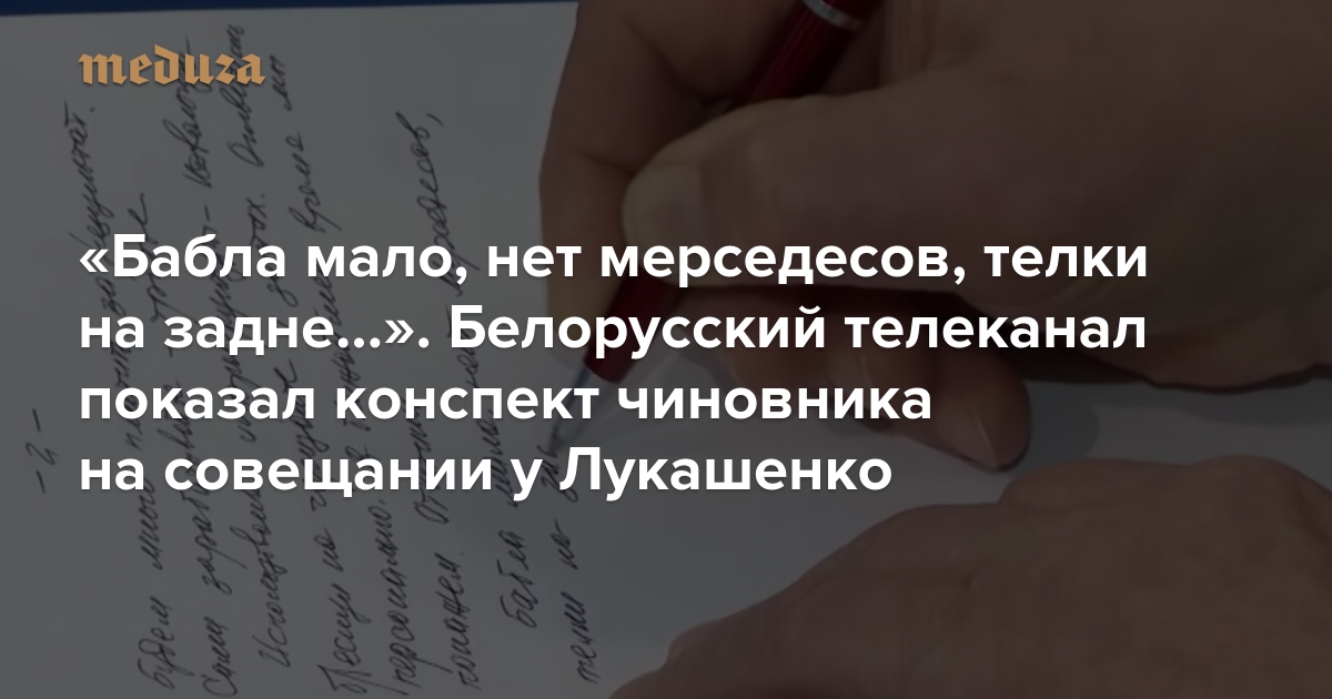 «Бабла мало, нет мерседесов, телки на задне…». Белорусский телеканал показал конспект чиновника на совещании у Лукашенко