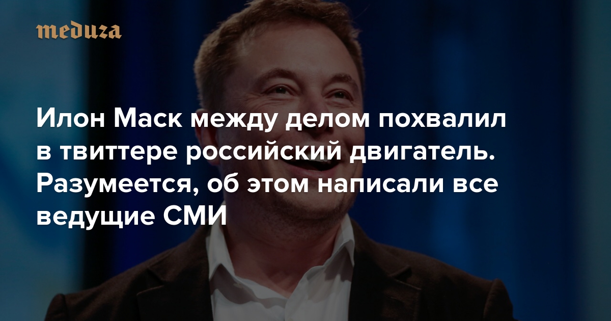 Илон Маск между делом похвалил в твиттере российский двигатель. Разумеется, об этом написали все ведущие СМИ