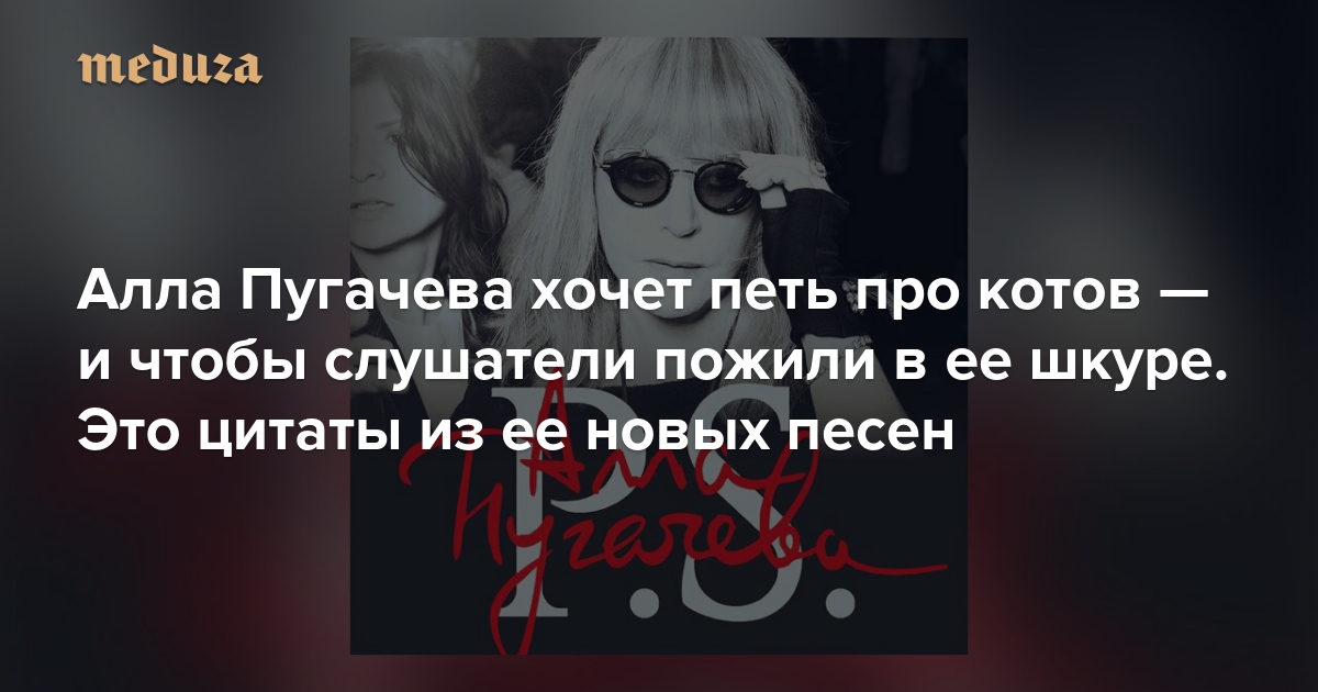 Алла Пугачева хочет петь про котов — и чтобы слушатели пожили в ее шкуре. Это цитаты из ее новых песен