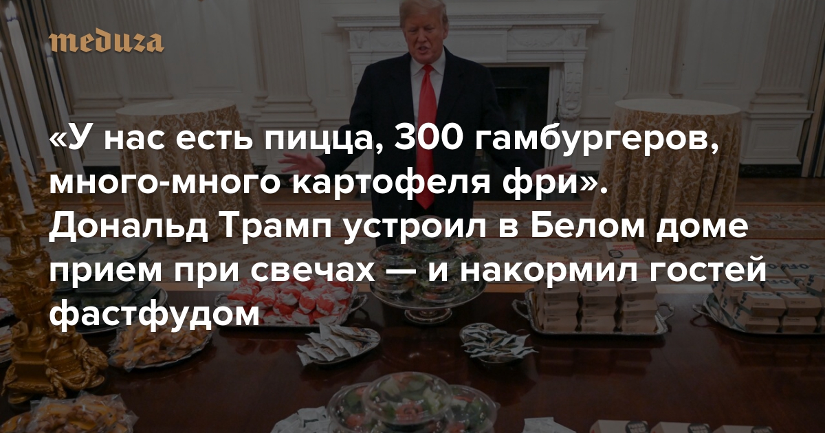 «У нас есть пицца, 300 гамбургеров, много-много картофеля фри». Дональд Трамп устроил в Белом доме прием при свечах — и накормил гостей фастфудом