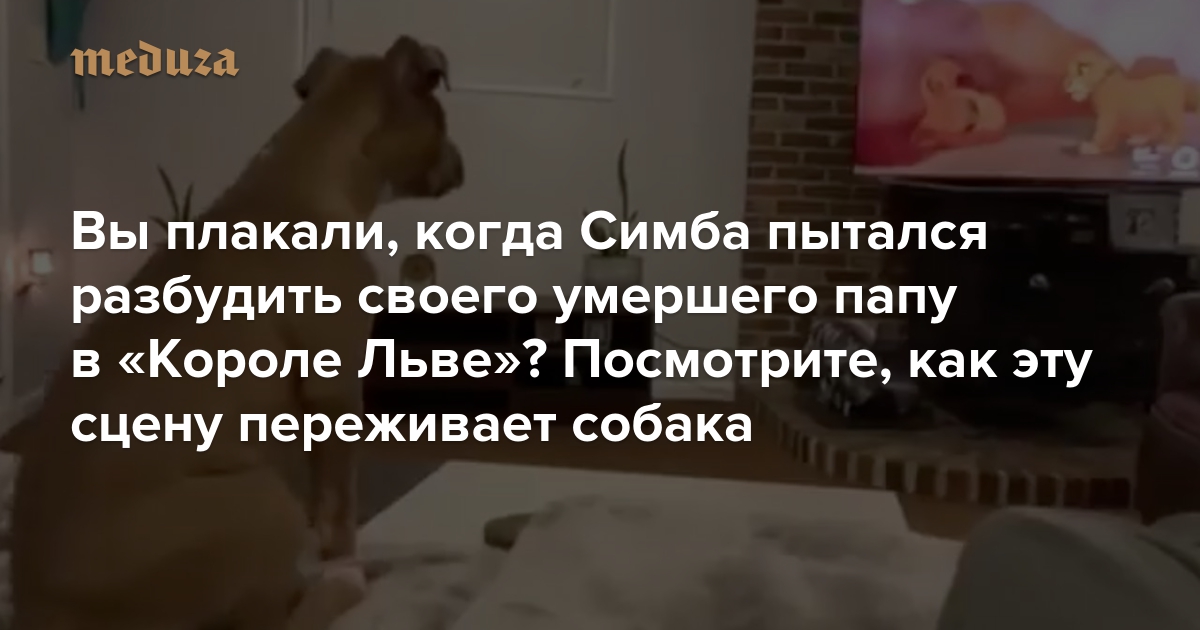 Не только люди плачут, когда смотрят самую трагическую сцену из мультфильма «Король Лев» — ту, где Симба находит тело своего отца Муфасы. Просто посмотрите на эту собаку (и попробуйте не заплакать сами):