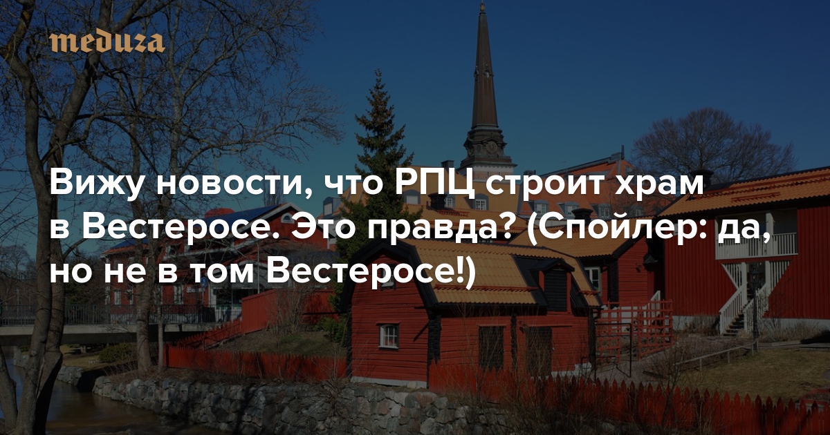 Материалы с такими заголовками вышли в РИА Новости, «Комсомольской правде», «Ленте.ру» и других российских изданиях. Но речь вовсе не о континенте из «Игры престолов», а о реальном городе в Швеции. По словам пресс-секретаря патриарха Кирилла Александра Волкова, в шведском Вестеросе (а также в городе Лимасол на Кипре) действительно строятся новые храмы, принадлежащие РПЦ.